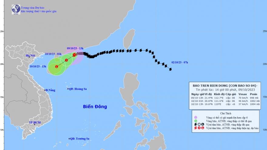 VOV.VN - Bão số 4 có sức gió mạnh nhất vùng gần tâm bão mạnh cấp 8 (62-74 km/h), giật cấp 10, di chuyển chậm theo hướng Tây Tây Nam với tốc độ 5-10km/h.