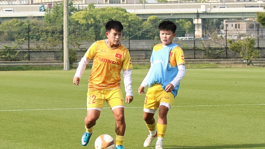 VOV.VN - ĐT nữ Việt Nam hào hứng trải nghiệm điều kiện sân bãi và thời tiết ở trung tâm huấn luyện J-Green Sakai trong buổi tập đầu tiên trên đất Nhật Bản.
