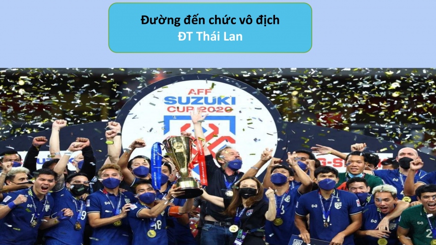 VOV.VN - ĐT Thái Lan thắng thuyết phục ĐT Indonesia để vô địch AFF Cup 2020, đây là chức vô địch thứ 6 của “Voi chiến” và số chức vô địch của đội bóng này đã bằng thành tích hai đội tuyển Singapore và Việt Nam cộng lại ở giải đấu khu vực.