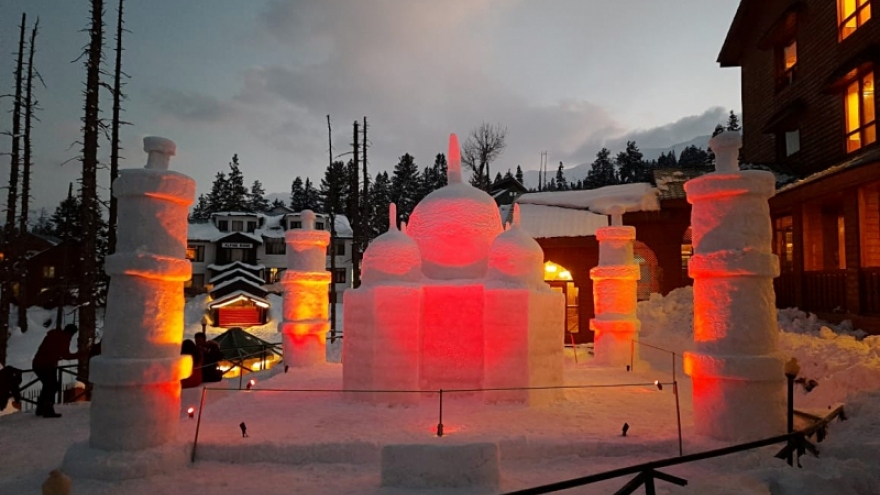 VOV.VN - Một nhóm 4 nhà điêu khắc Ấn Độ đã tạo ra một tác phẩm điêu khắc ngôi đền Taj Mahal bằng băng tuyết ở thị trấn Gulmarg, phía Bắc vùng lãnh thổ liên bang Jammu và Kashmir.