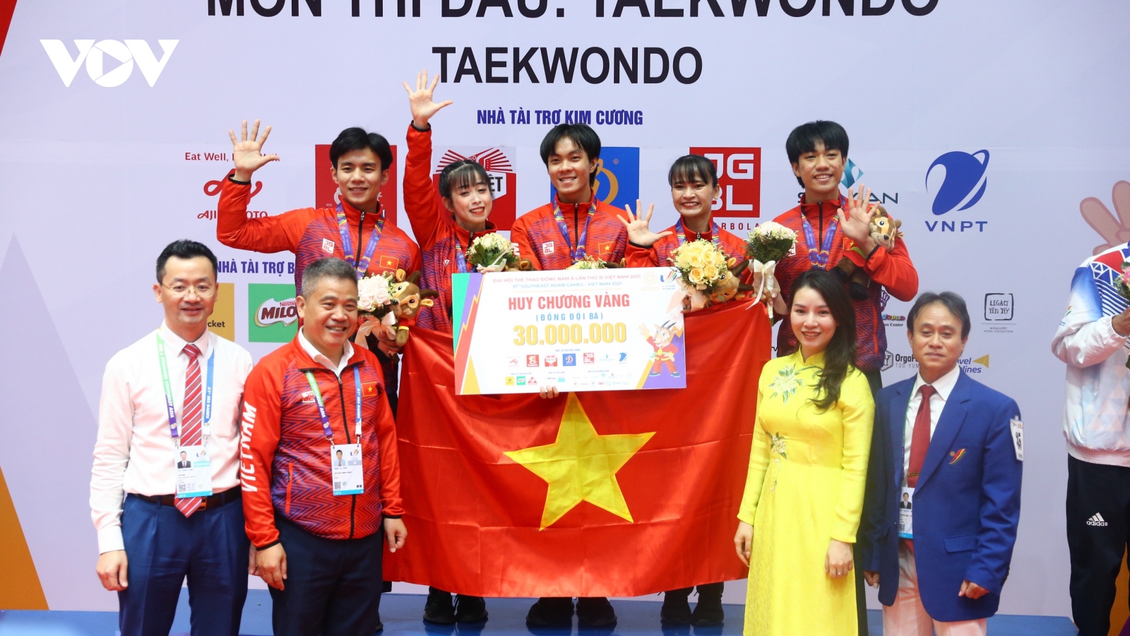 VOV.VN - Liên đoàn Taekwondo Việt Nam vừa công bố mức thưởng ở SEA Games 32, mỗi tấm HCV sẽ nhận thưởng 500 USD (gần 12 triệu đồng), mỗi tấm HCB được thưởng 300 USD (hơn 6 triệu đồng) và mỗi tấm HCĐ được thưởng 200 USD (hơn 4 triệu đồng).