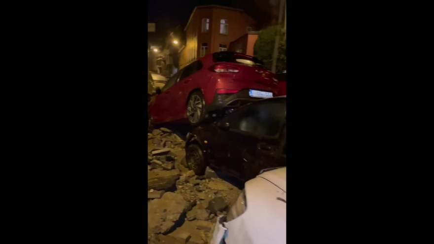 VOV.VN - Thành phố Dinant, Bỉ đã phải hứng chịu đợt lũ mạnh nhất trong hàng chục năm, sau khi trận mưa lớn hôm 24/7 biến đường phố thành sông, dòng nước lũ nhấn chìm hàng loạt ô tô và vỉa hè trong biển nước.