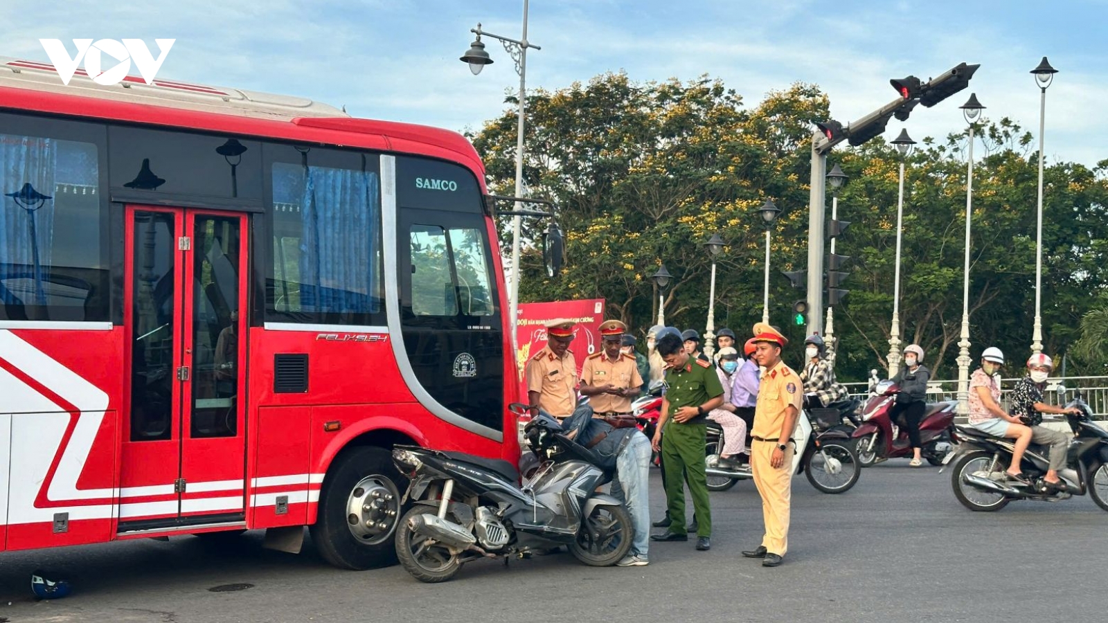 VOV.VN - Vào khoảng 15h15 chiều 24/5, tại nút giao giữa cầu Dã Viên và đường Lê Duẩn, phường Thuận Hòa, quận Phú Xuân, thành phố Huế xảy ra vụ tai nạn giao thông nghiêm trọng giữa xe khách và xe máy làm 2 người tử vong và 2 cháu nhỏ bị thương.