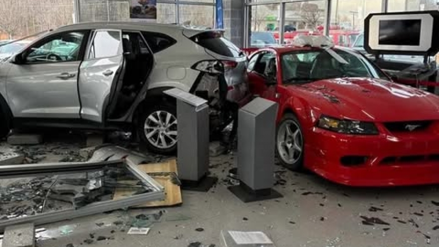 VOV.VN - Chiếc Mustang SVT Cobra R đời 2000 cực kỳ hiếm đã bị phá hủy nghiêm trọng khi một chiếc Hyundai Tucson đâm vào đại lý Ford. Vụ tai nạn khiến chiếc xe triệu đô này có thể phải rời khỏi vị trí "báu vật" được trưng bày để trở lại đường đua.