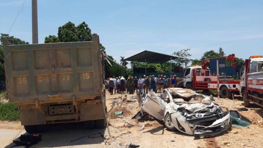 VOV.VN - Sáng 14/8, thông tin từ UBND huyện Thọ Xuân, tỉnh Thanh Hóa cho biết, trên địa bàn xã Xuân Lai, huyện Thọ Xuân vừa xảy ra vụ xe tải tông nát ô tô, 3 người may mắn thoát chết.