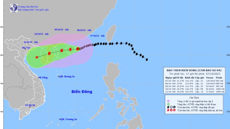 VOV.VN - Theo Trung tâm dự báo khí tượng thủy văn Quốc gia, hồi 13 giờ ngày 3/10, vị trí tâm bão ở vào khoảng 21,1 độ Vĩ Bắc; 124,8 độ Kinh Đông, trên vùng biển phía Đông Bắc đảo Lu-Dông (Philippin). Sức gió mạnh nhất vùng gần tâm bão mạnh cấp 15 (167-183km/h), giật trên cấp 17, di chuyển theo hướng Tây Bắc, khoảng 10km/h.