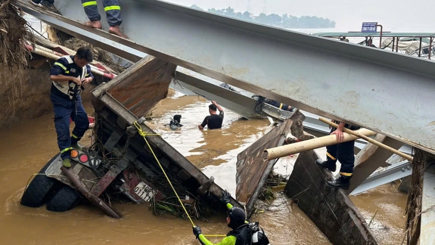 Chính thức bắc cầu phao tại khu vực cầu Phong Châu (Phú Thọ) sáng nay 29/9