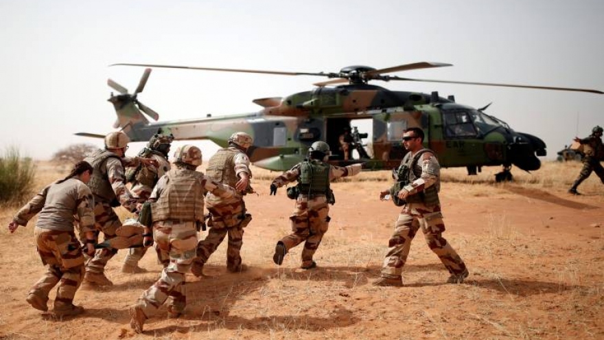 VOV.VN - Ngày 22/6, Bộ Tổng tham mưu Pháp thông báo, 6 binh sĩ nước này và 4 dân thường Mali đã bị thương do một vụ đánh bom liều chết ở khu vực miền Trung Mali.