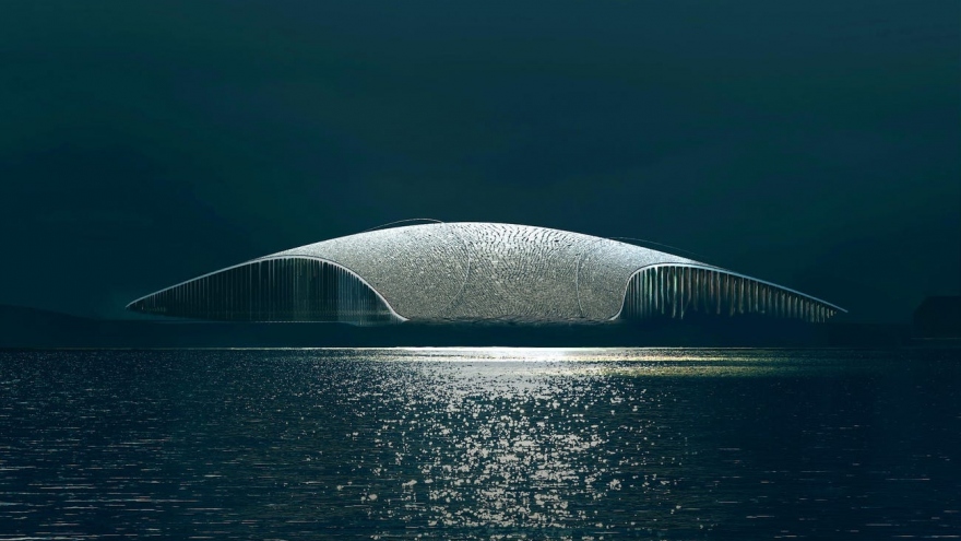 VOV.VN - Nhìn từ xa, bảo tàng The Whale trông hệt như đuôi cá voi đang trồi lên mặt nước. Bên trong bảo tàng là một trung tâm triển lãm, giáo dục để du khách tìm hiểu về cuộc sống của các loài sinh vật biển.