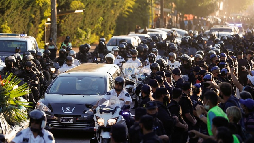 VOV.VN - Hàng ngàn người đã đi theo đoàn xe chở linh cữu huyền thoại Maradona từ phủ Tổng thống Argentina đến nghĩa trang Jardin Bella Vista, nơi an nghỉ cuối cùng của ông.