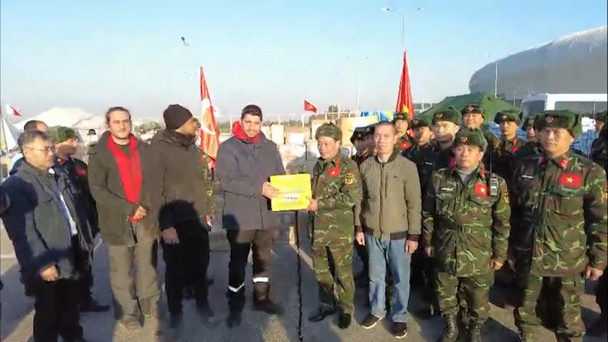 VOV.VN - Đoàn cứu hộ, cứu nạn của Quân đội nhân dân Việt Nam vừa trao tặng 1 tấn lương khô cùng các vật tư y tế cho chính quyền tỉnh Hatay, Thổ Nhĩ Kỳ để phục vụ công tác khắc phục hậu quả do thảm họa động đất.