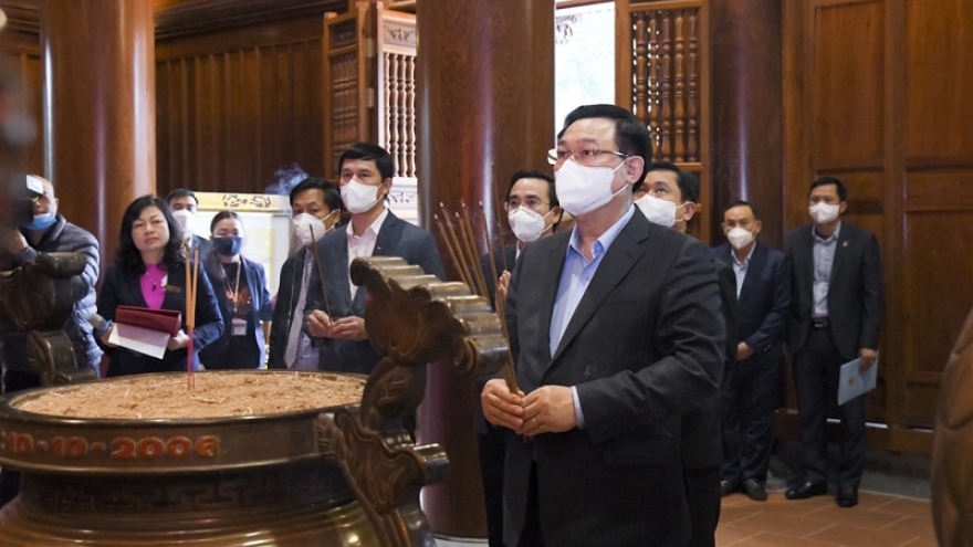 VOV.VN - Chủ tịch Quốc hội Vương Đình Huệ cùng đoàn đại biểu thành kính dâng hương tưởng niệm, bày tỏ lòng biết ơn vô hạn và công lao to lớn của Chủ tịch Hồ Chí Minh.
