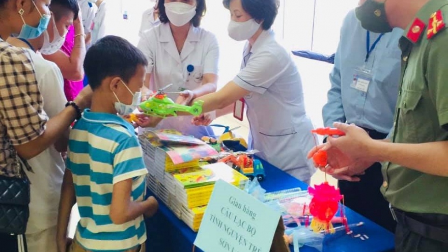 VOV.VN - Gần 100 bệnh nhi đang điều trị tại Bệnh viện Đa khoa tỉnh Sơn La đã nhận các suất quà gồm: sữa, bánh kẹo, đồ chơi và đồ dùng học tập từ các gian hàng 0 đồng.