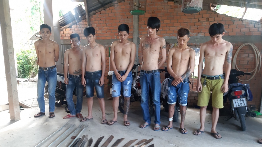 VOV.VN - Tại hiện trường, lực lượng chức năng đã tạm giữ 15 cây dao tự chế, 2 máy bắn cá không rõ nguồn gốc, không giấy phép kinh doanh cùng 1 số dụng cụ để sử dụng ma túy.