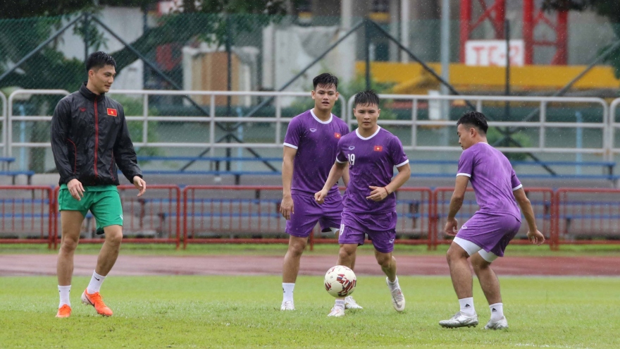 VOV.VN - ĐT Việt Nam có buổi tập đầu tiên trên đất Singapore, dù thời tiết không ủng hộ thầy trò HLV Park Hang Seo khi trời có mưa, nhưng bù lại chúng ta lại được đặc cách khi tập một mình một sân.