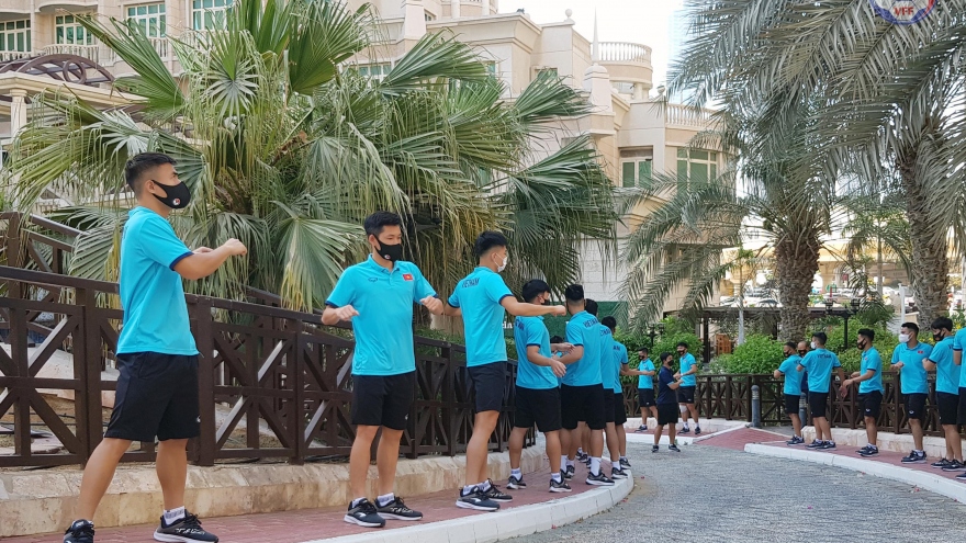 VOV.VN - Trong phần lớn thời gian của ngày đầu tiên ở UAE, ĐT Việt Nam chỉ có những hoạt động trong khuôn viên khách sạn trước khi có buổi tập đầu tiên vào buổi tối.