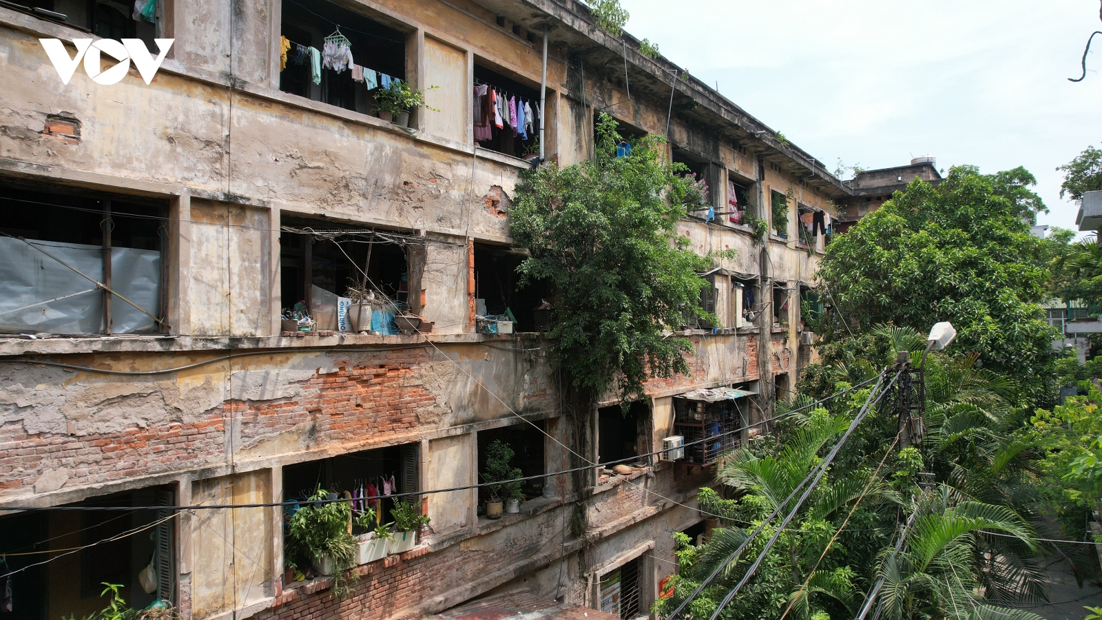 VOV.VN - Dãy nhà 8 khu tập thể Đại học Kinh tế xuống cấp được xây dựng từ những năm 1959-1960. Trải qua hơn 60 năm xây dựng, giờ đây khu tập thể đã xuống cấp nghiêm trọng, đe dọa đến cuộc sống của người dân.