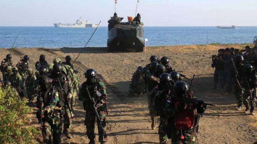 VOV.VN - Lực lượng Phòng vệ Mặt đất Nhật Bản ngày 26/8 đã bắt đầu tham gia cuộc tập trận chung mang tên “Siêu lá chắn Garuda” (SGS) tại Indonesia. Đây là cuộc tập trận quân sự đa phương do quân đội Indonesia phối hợp với lực lượng vũ trang Mỹ tổ chức thường niên và được đánh giá là cuộc tập trận chung lớn nhất từ trước đến nay.