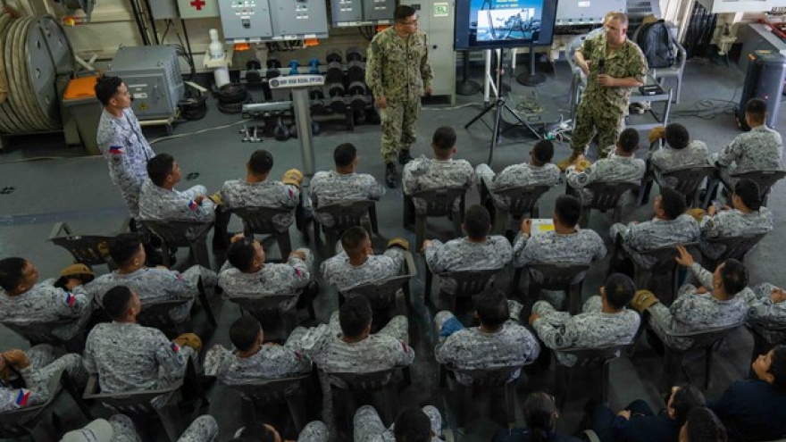 VOV.VN - Thủy quân lục chiến Philippines và Mỹ đang cùng các quốc gia khác tiến hành hàng loạt các cuộc tập trận từ ngày 7-25/10 với sự tham dự của nhiều quốc gia.