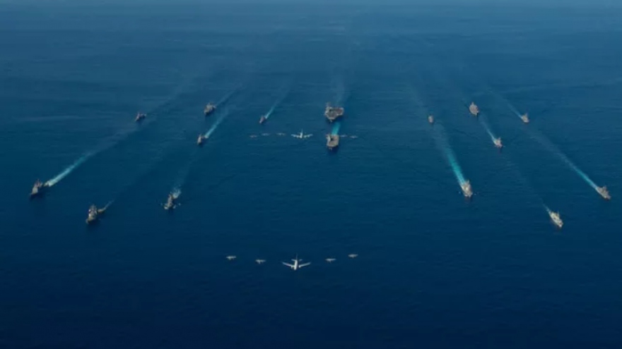 VOV.VN - Cuộc tập trận lần này có sự tham gia của hàng chục tàu chiến, hàng trăm máy bay và khoảng 46.000 binh sĩ, thủy thủ, thủy quân lục chiến của Mỹ và Nhật Bản.