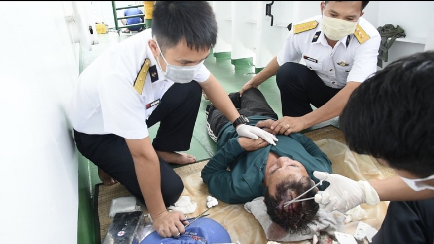 VOV.VN - Vào khoảng 21h30 đêm 22/8, tàu 954 thuộc Hải đội 511, Lữ đoàn 127, Vùng 5 Hải quân đã lai kéo thành công một tàu cá Kiên Giang bị hỏng máy vào bờ.