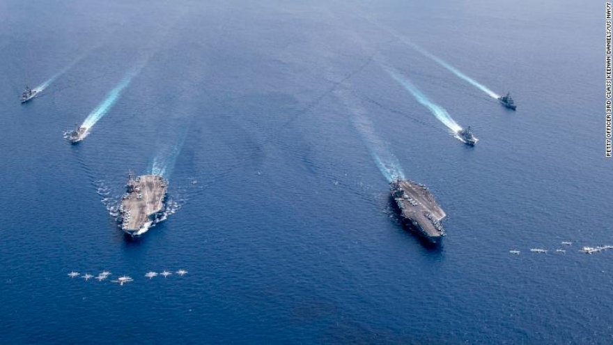 VOV.VN - Hai tàu sân bay Mỹ ngày 17/7 đã tiếp tục các hoạt động diễn tập ở Biển Đông. Đây là lần thứ 2 trong tháng các con tàu xuất hiện ở vùng biển này.