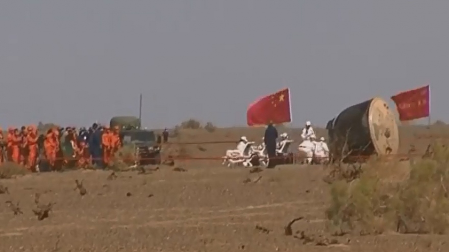 VOV.VN - Đoạn video được RT đăng tải cho thấy khoảnh khắc các nhà du hành Nie Haisheng, Liu Boming và Tang Hongbo trên tàu Thần Châu-12 trở về Trái Đất an toàn hôm 17/9 sau hơn 90 ngày ở trong không gian.