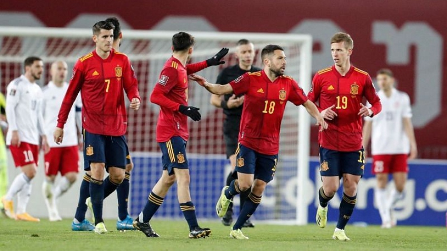 VOV.VN - Phải nhờ đến sự xuất sắc của Jordi Alba với hai tình huống kiến tạo, ĐT Tây Ban Nha mới có thể vượt qua Gruzia với tỷ số 2-1 để có chiến thắng đầu tiên ở vòng loại World Cup 2022.