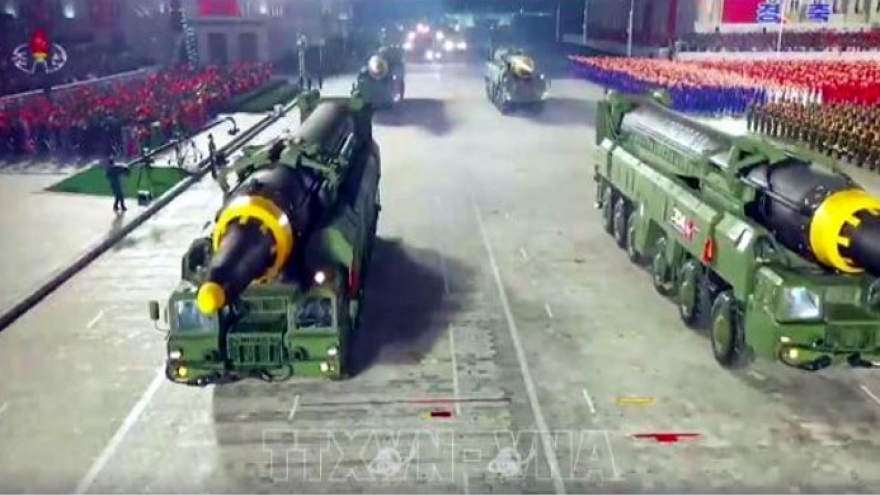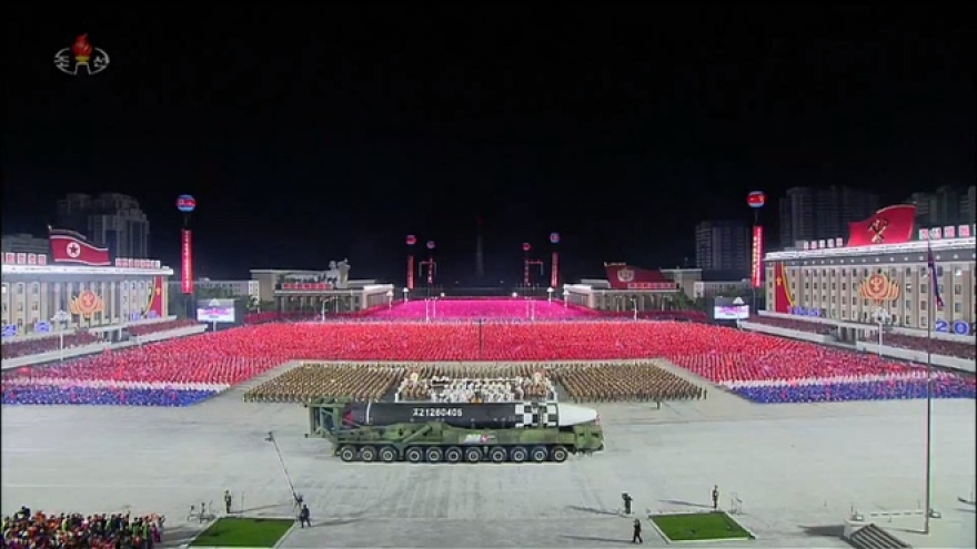 VOV.VN - Loại tên lửa đạn đạo phóng từ tàu ngầm (SLBM) mới được Triều Tiên phô diễn tại cuộc duyệt binh được tổ chức ở Bình Nhưỡng hôm 14/1. Theo KCNA, đây là loại vũ khí mạnh nhất thế giới.
