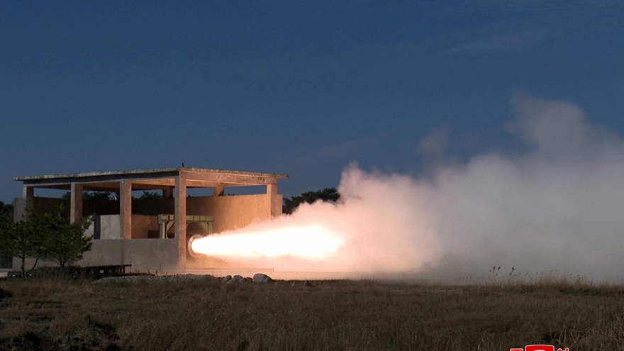 VOV.VN - Hãng thông tấn Trung ương Triều Tiên (KCNA) hôm nay (15/11) cho biết, nước này đã tiến hành thành công các cuộc thử nghiệm trên mặt đất đối với động cơ nhiên liệu rắn, được phát triển cho một loại tên lửa đạn đạo tầm trung (IRBM) mới.