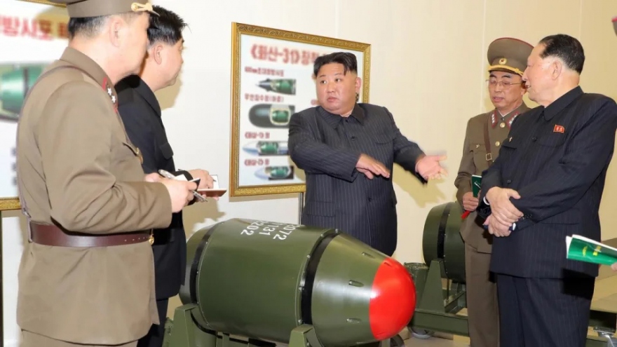 VOV.VN - Hãng thông tấn Trung ương Triều Tiên (KCNA) ngày 28/3 đưa tin, nhà lãnh đạo Kim Jong-un đã kêu gọi tăng quy mô sản xuất vật liệu hạt nhân cấp độ vũ khí để mở rộng kho vũ khí của Triều Tiên.