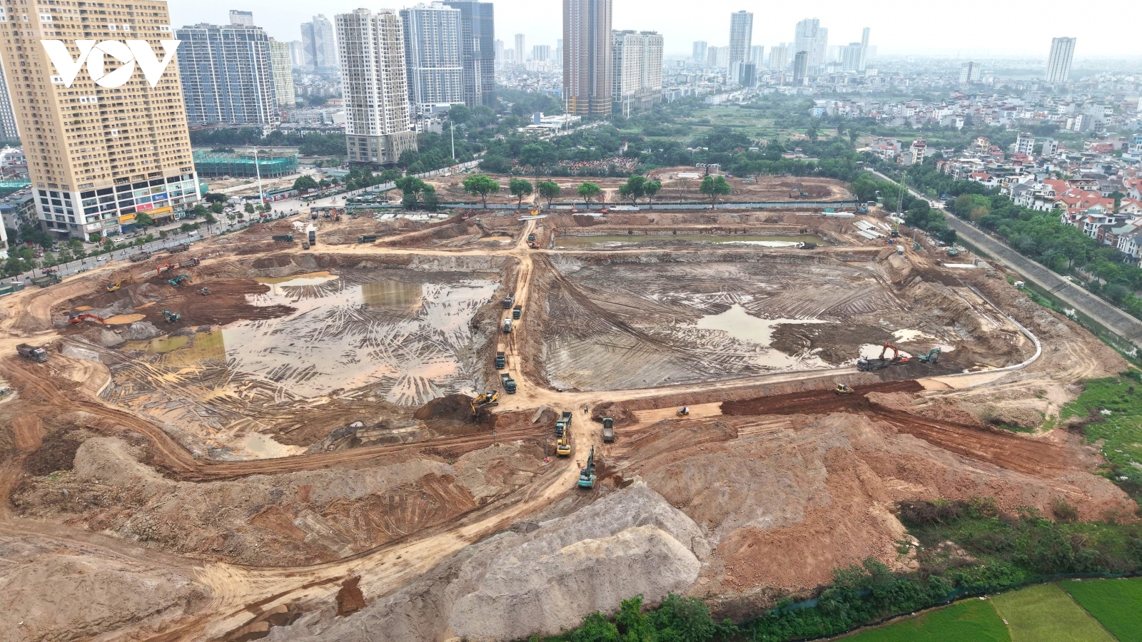 VOV.VN - Dự án hồ điều hòa Mễ Trì (phường Đại Mỗ, Hà Nội) hơn 370 tỉ đồng đang bước vào giai đoạn nước rút. Trên công trường, máy móc hoạt động liên tục, công nhân, kỹ sư làm việc xuyên ngày đêm, kể cả dịp nghỉ lễ, nhằm kịp đưa công trình vào vận hành trước mùa mưa 2026, giảm áp lực ngập úng khu vực phía Tây Hà Nội.