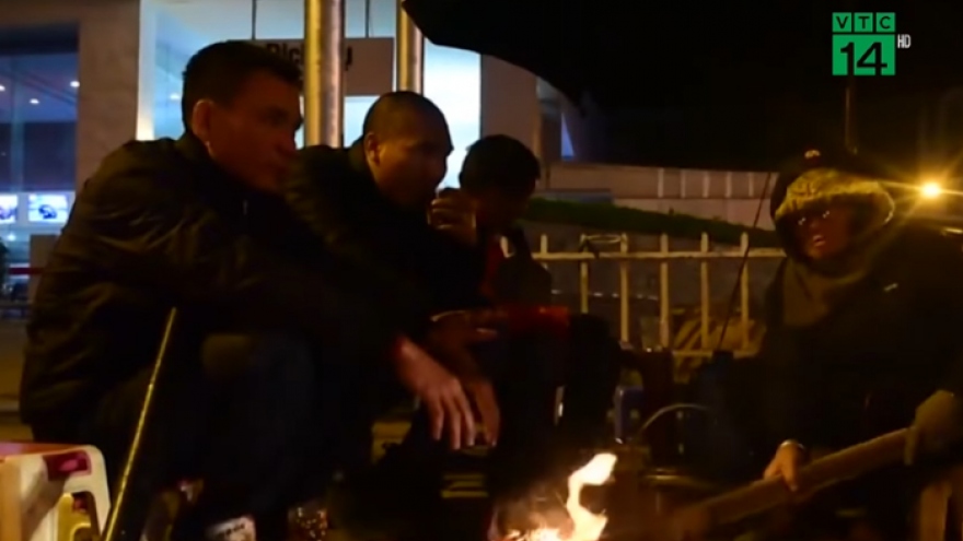 VOV.VN - Các tỉnh miền Bắc đang trong những ngày rét nhất từ đầu Đông, nhiệt độ thấp nhất giảm xuống còn khoảng 10-12 độ C kèm theo gió lạnh khiến người dân khi ra đường phải tìm đủ mọi cách để giữ ấm như mặc quần áo kín, đốt lửa sưởi ấm bên vỉa hè...