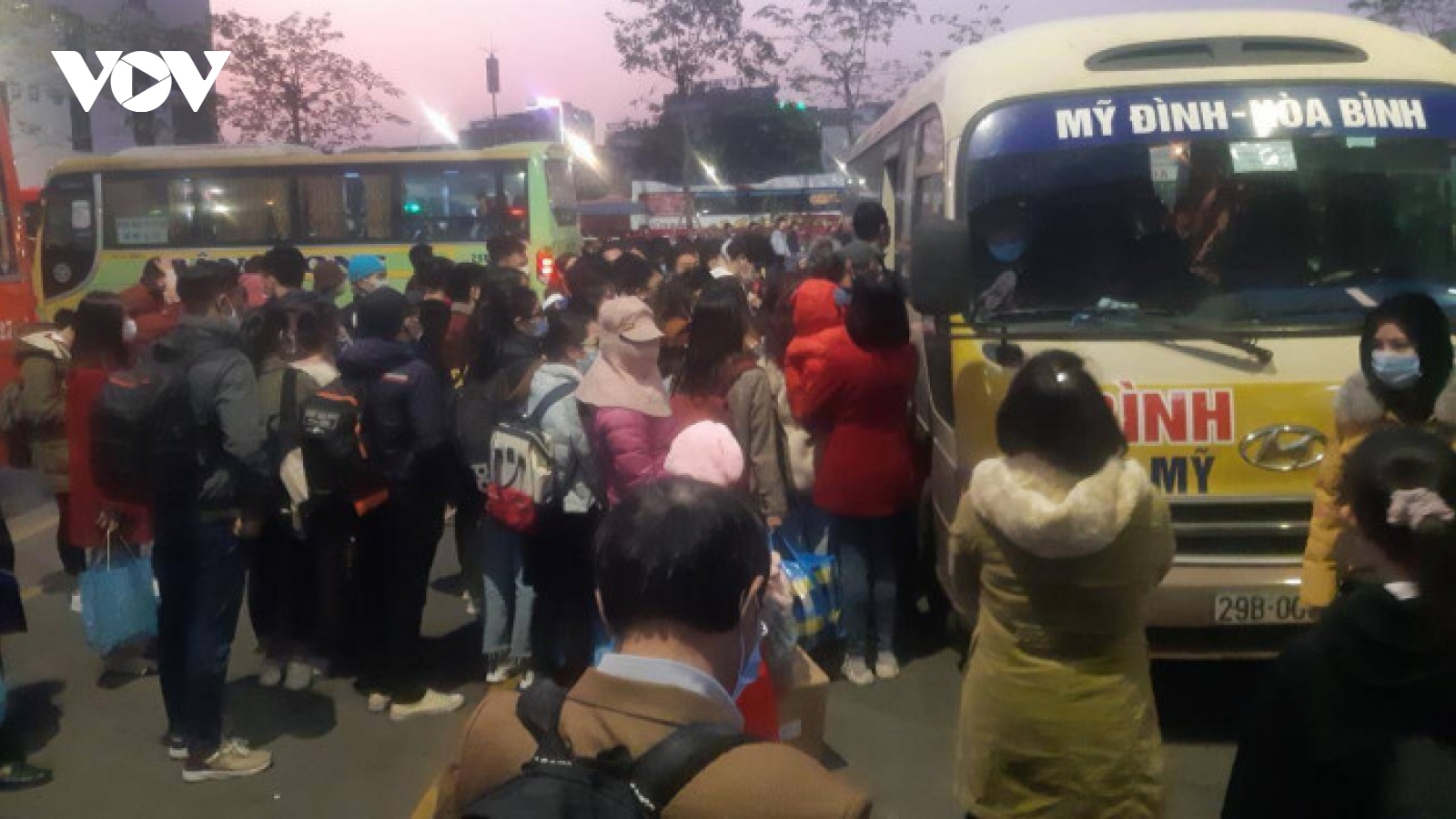 VOV.VN - Đến sáng nay, nhiều người dân vẫn đổ về các bến xe tại Hà Nội để về quê nghỉ Tết Dương lịch, ùn tắc cục bộ xảy ra tại một số tuyến đường cửa ngõ Thủ đô.