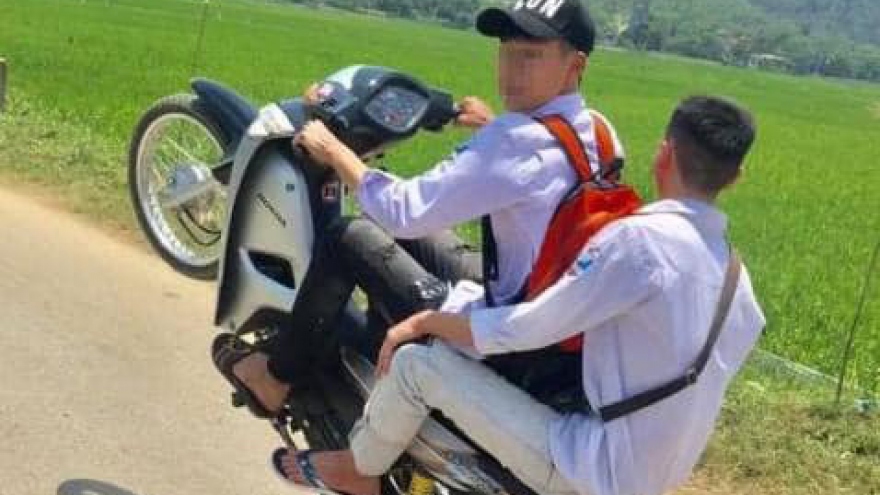 VOV.VN - 2 nam thanh niên trên địa bàn huyện Thạch Thất thường xuyên đi xe máy, không đội mũ bảo hiểm, "bốc đầu" xe máy gây mất trật tự an toàn giao thông.