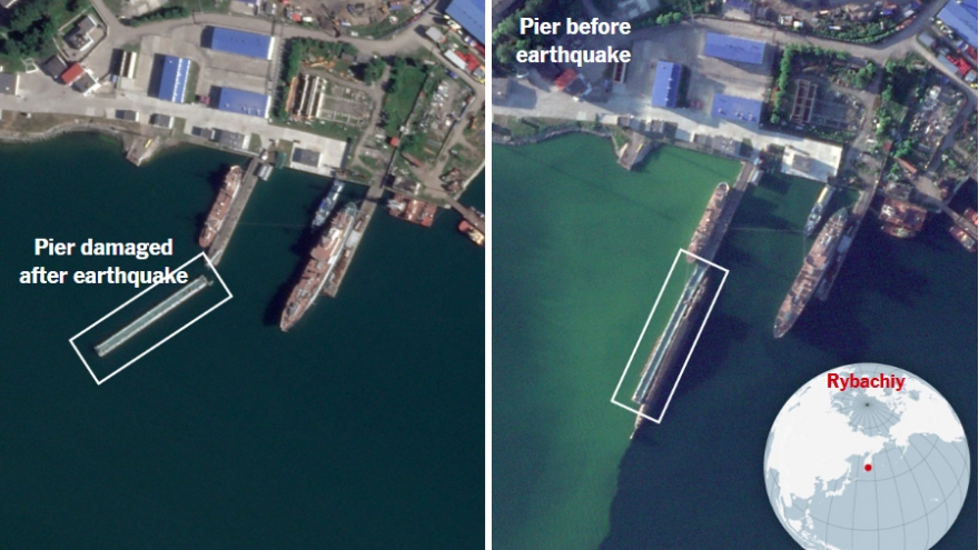 VOV.VN - Ảnh vệ tinh mới nhất cho thấy, căn cứ tàu ngầm hạt nhân của Nga ở vùng Viễn Đông đã chịu thiệt hại nhẹ sau trận động đất mạnh nhất trong nhiều thập kỷ xảy ra tại khu vực này hồi tuần trước.