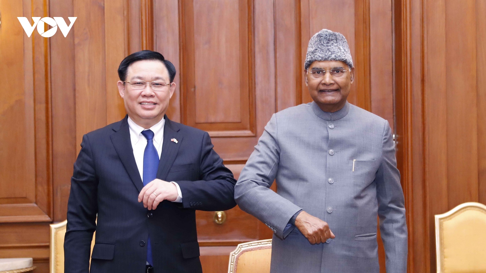 VOV.VN - Ngày 19/12, tại Phủ Tổng thống Ấn Độ, Chủ tịch Quốc hội Vương Đình Huệ đã hội kiến với Tổng thống Ấn Độ Ram Nath Kovind trong khuôn khổ chuyến thăm chính thức Cộng hòa Ấn Độ từ ngày 15-19/12/2021.