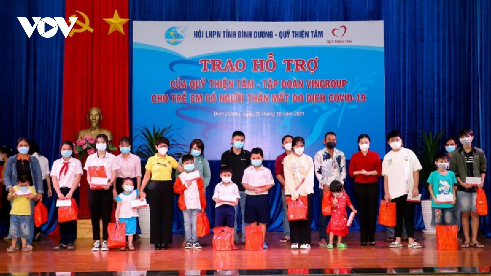 VOV.VN - Hôm nay (26/10), Hội Liên hiệp Phụ nữ tỉnh Bình Dương phối hợp Quỹ Thiện Tâm thuộc Tập đoàn Vingroup tổ chức trao hỗ trợ cho trẻ em có người thân mất do dịch COVID-19.