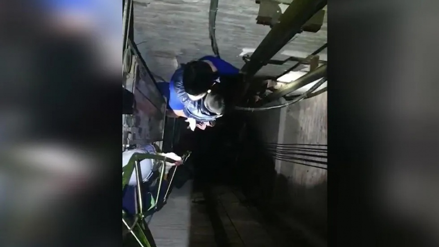 VOV.VN - Trưa 21/4, chỉ huy Đội Cảnh sát Phòng cháy và cứu nạn cứu hộ (Công an quận Nam Từ Liêm) cho biết, đơn vị vừa giải cứu 2 người mắc kẹt trong hố thang máy.