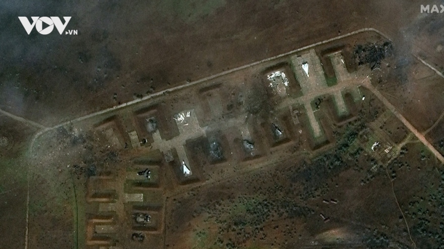 VOV.VN - Những hình ảnh vệ tinh từ công ty Maxar Technologies đã cho thấy mức độ phá hủy sau các vụ nổ gần đây ở căn cứ không quân Nga trên bán đảo Crimea ngày 10/8.