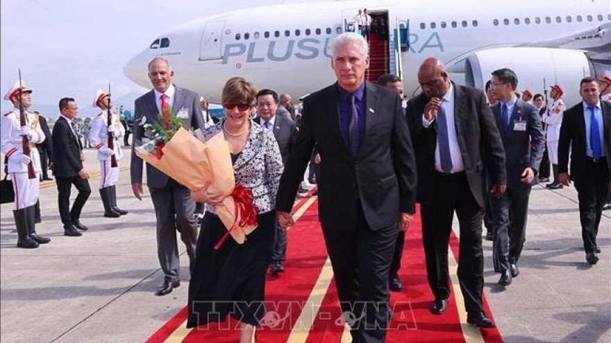 VOV.VN - Sáng 31/8, Bí thư thứ Nhất Ban Chấp hành TƯ Đảng Cộng sản Cuba, Chủ tịch nước Cộng hòa Cuba Miguel Díaz-Canel Bermúdez và Phu nhân Lis Cuesta Peraza đến Hà Nội, bắt đầu thăm cấp Nhà nước tới Việt Nam, dự Lễ kỷ niệm 80 năm Cách mạng Tháng Tám thành công và Quốc khánh nước CHXHCN Việt Nam, từ ngày 31/8 -2/9.