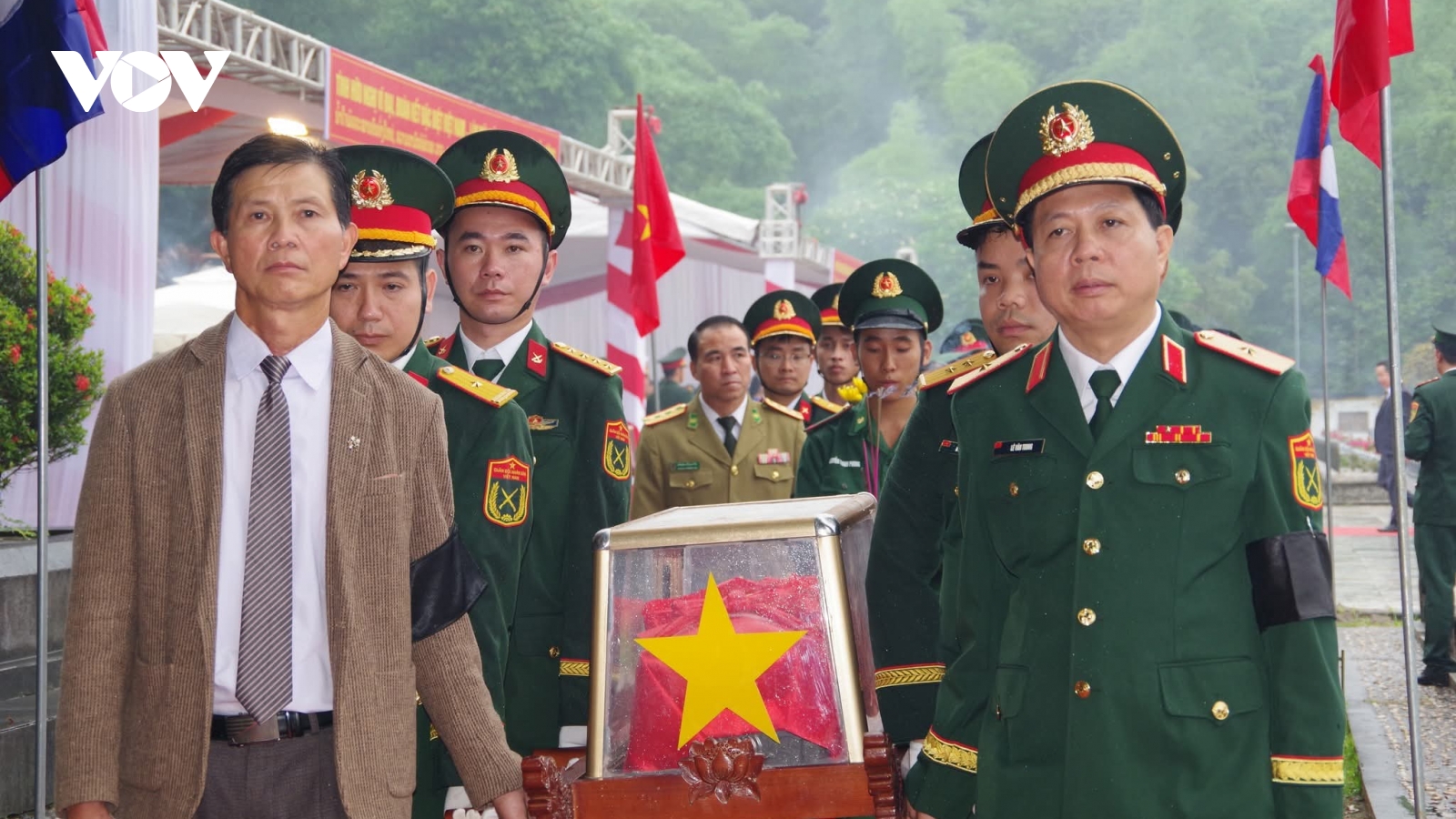VOV.VN - Sáng 27/5, tại Nghĩa trang Liệt sĩ Quốc tế Đồng Tâm, huyện Bá Thước, tỉnh Thanh Hóa tổ chức Lễ viếng, truy điệu và an táng 21 hài cốt liệt sĩ quân tình nguyện và chuyên gia Việt Nam hy sinh trên nước bạn Lào, được tìm kiếm, quy tập trong mùa khô 2024 -2025.