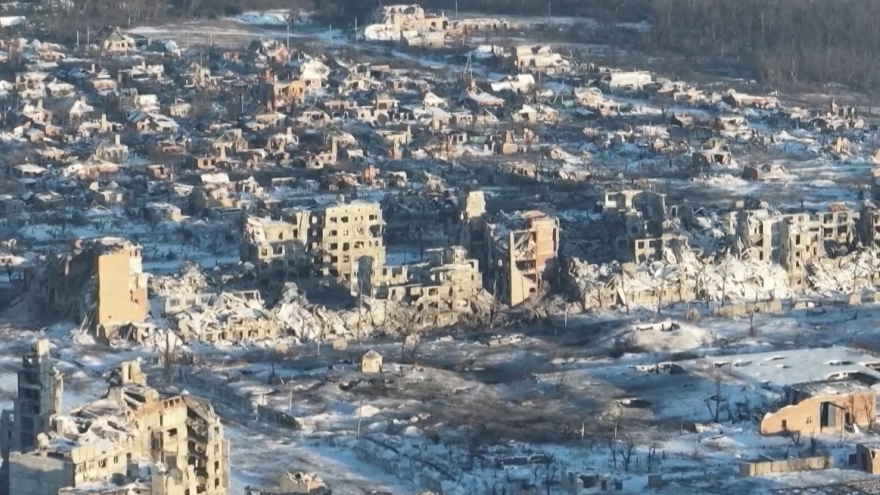 VOV.VN - Binh sĩ Ukraine đã sử dụng máy bay không người lái (UAV) ghi lại khung cảnh thành phố Bakhmut ở phía Bắc Donetsk bị phá hủy gần như hoàn toàn. Đây từng là nơi diễn ra giao tranh ác liệt giữa Nga và Ukraine trong nhiều tháng.
