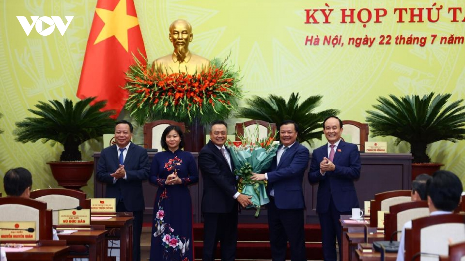 VOV.VN - Chiều 22/7, kỳ họp chuyên đề (kỳ họp thứ 8) HĐND thành phố Hà Nội với 100% số phiếu đại biểu có mặt tán thành biểu quyết bầu ông Trần Sỹ Thanh, Phó Bí thư Thành uỷ Hà Nội làm Chủ tịch UBND thành phố Hà Nội