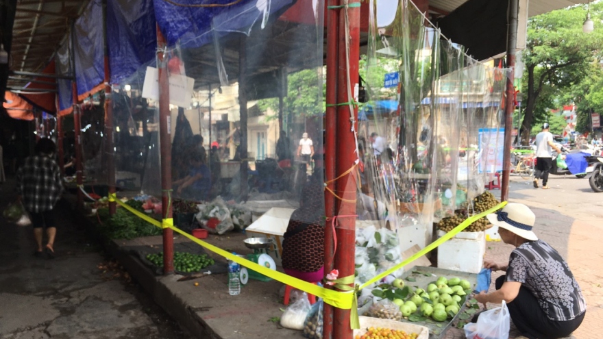 Tiểu thương chợ Bách Khoa góp tiền mua tấm nilon giãn cách phòng dịch