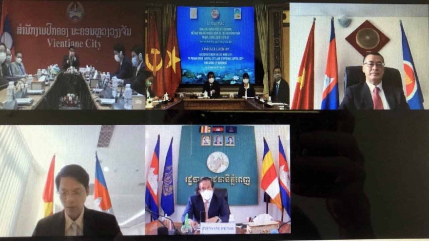 VOV.VN - Sáng nay (7/5), đã diễn ra lễ trao quà của UBND TP HCM trao quà tặng hỗ trợ chính quyền 2 thủ đô Phnom Penh (Campuchia) và Vientiane (Lào) để hỗ trợ các thành phố này trong công tác phòng chống dịch bệnh Covid-19.