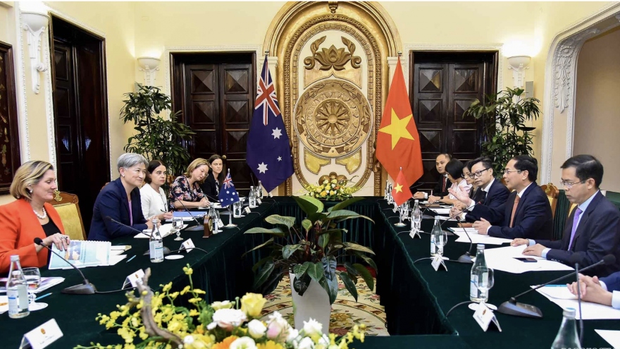 VOV.VN - Sáng 27/6, tại Nhà khách Chính phủ, Bộ trưởng Ngoại giao Bùi Thanh Sơn đã tiến hành hội đàm với Bộ trưởng Ngoại giao Australia Penny Wong nhân dịp thăm chính thức Việt Nam từ ngày 26-28/6.