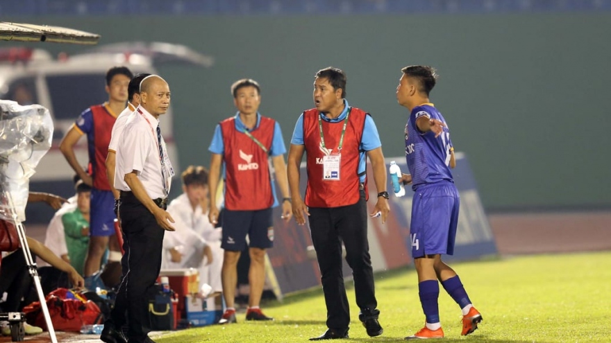 VOV.VN - HLV Bình Dương - Nguyễn Thanh Sơn bức xúc vì sự phối hợp không ăn ý của các trọng tài đã khiến đội bóng của ông mất đi 1 quyền thay người hợp lệ.