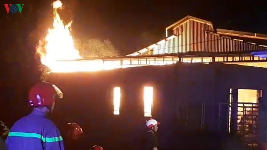 Khu sản xuất nhang của chùa Thanh Tâm bốc hỏa trong đêmVOV.VN - Sau 2 giờ cháy, khu sản xuất rộng gần 300m2 cùng nhiều máy móc, thiết bị của chùa Thanh Tâm ở tỉnh Bình Phước đã bị cháy và hư hỏng nặng.