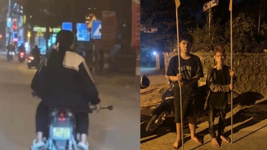 VOV.VN - Công an TP Hà Nội đã tiến hành triệu tập các thanh thiếu niên, trong đó có một thiếu nữ cầm hung khí diễu phố gây mất trật tự công cộng. Nhóm đối tượng còn rất trẻ, tuổi từ 13 đến 16.